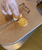 クラッカーにチョコレートと挟んで「スモア」、初めての味。