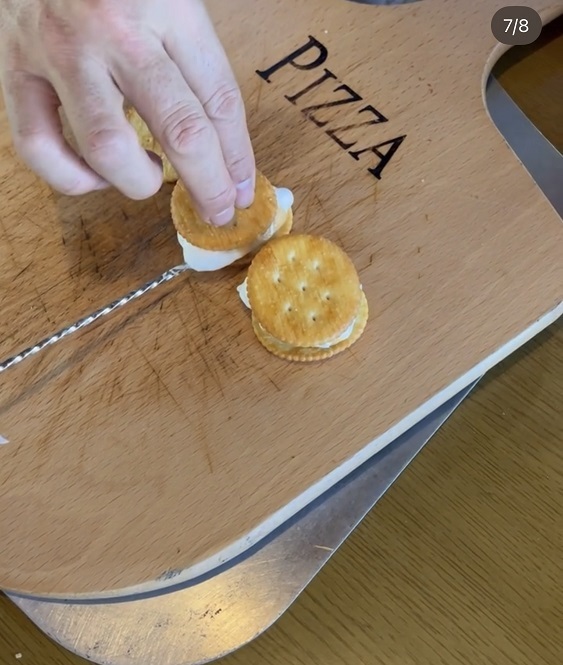クラッカーにチョコレートと挟んで「スモア」、初めての味。